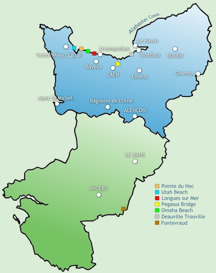 Sword Beach, Utah Beach, Juno Beach, Gold Beach, Omaha Beach, Pointe du Hoc, Colleville sur Mer (American cemetery), …